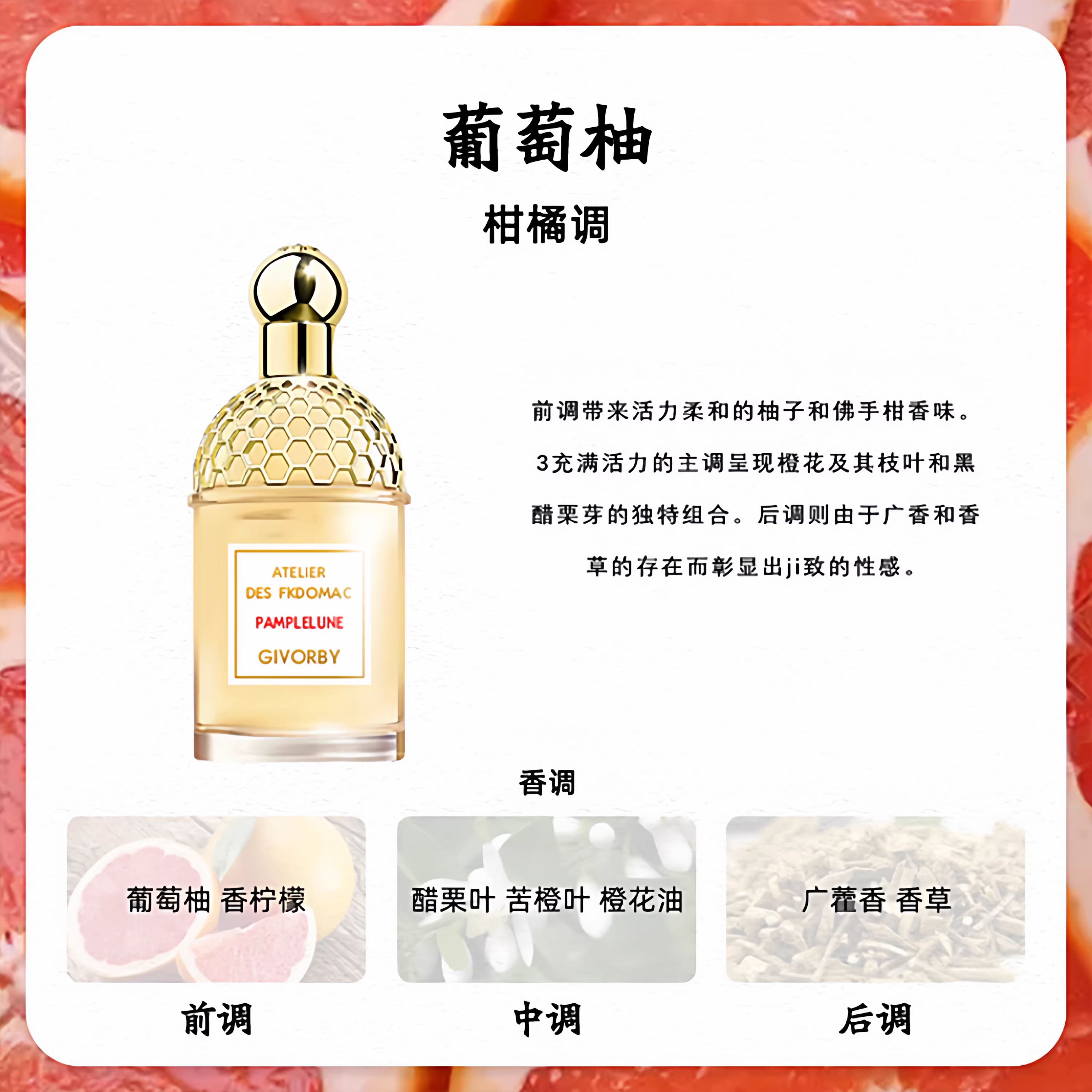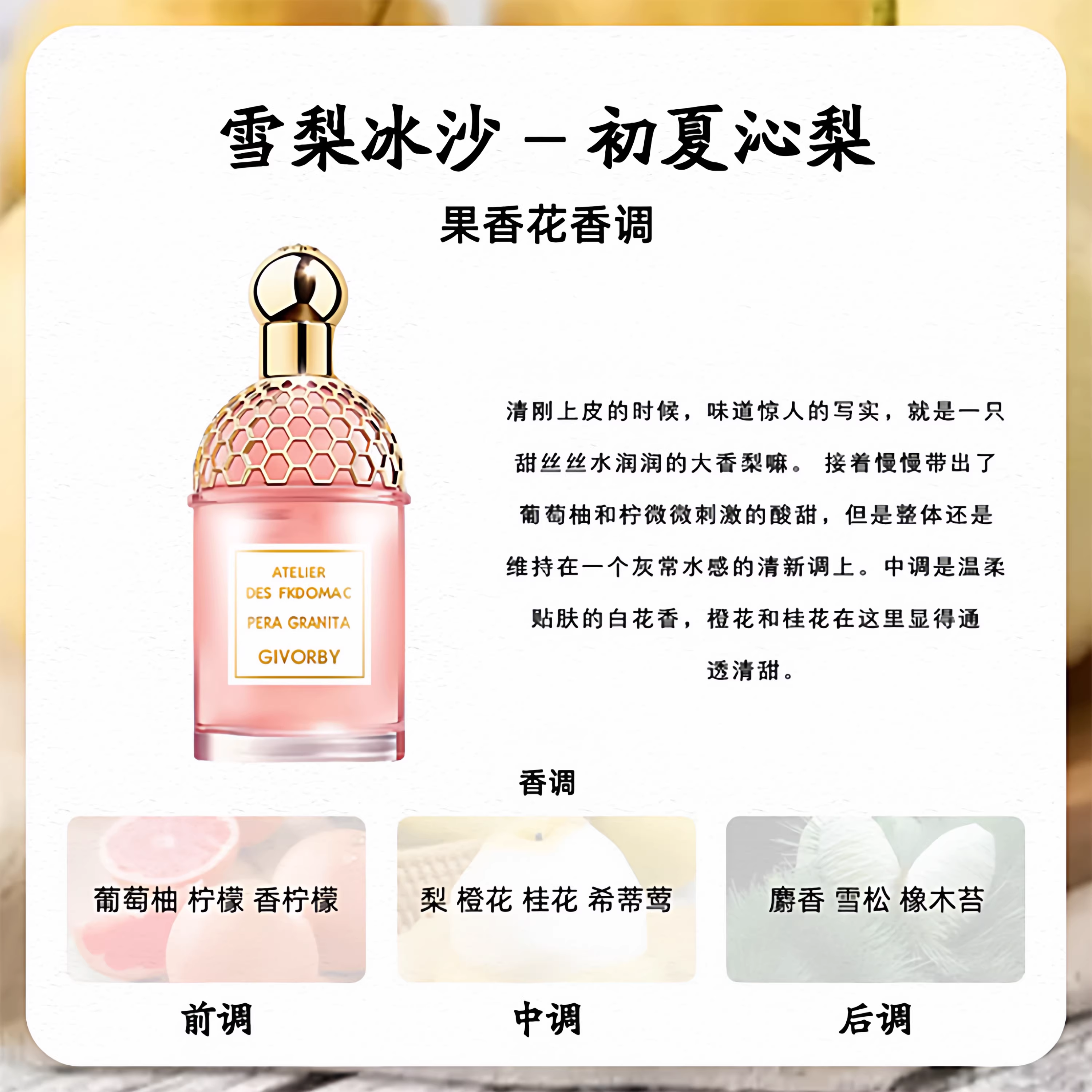 嬌嫩玫瑰玫瑰花草水語雪梨冰沙葡萄柚柑橘羅勒橙花岩蘭香水